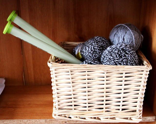 Hittade en korg i vår kök som ingen använder och snodde den till mina garner. Blir mer inspirerande när jag faktiskt kan se dem istället för att de ska ligga i en påse. Har dessutom hunnit tröttna på raggsockorna som aldrig blir klara (kanske för att de låg i en påse och jag aldrig stickade på dem). Så nu får det bli en tröja istället. Tänker mig glest stickat, vid och midjelång. Får se hur mitt norska raggsocksgarn införskaffat för 8 norska kronor nystanet tar sig för det. Garn kan nog vara det enda som är billigt i Norge.